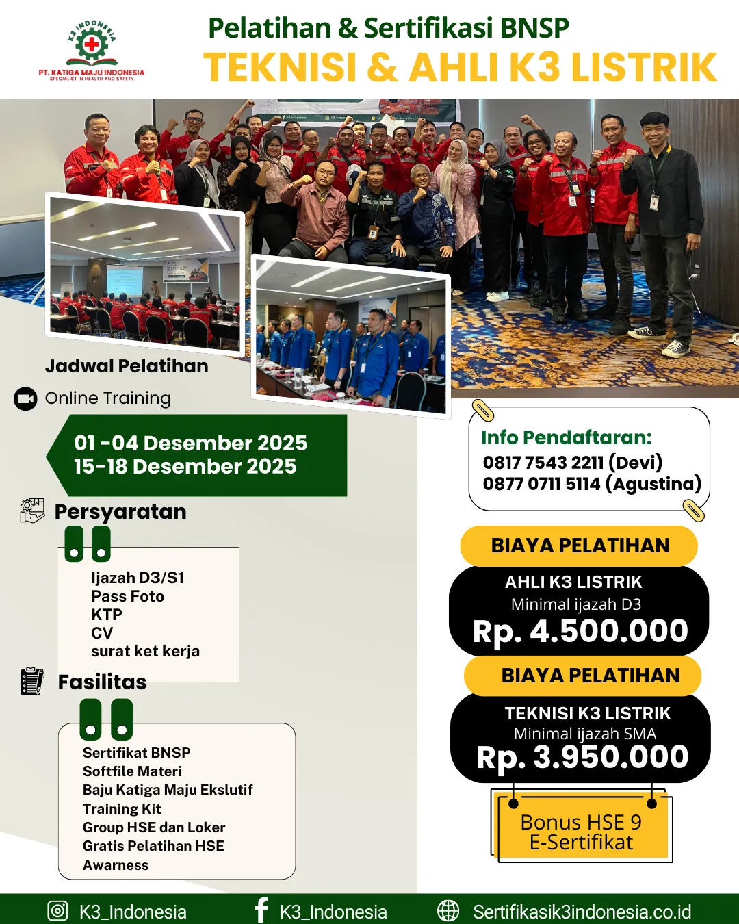 Pelatihan Teknisi K3 Listrik Sertifikasi BNSP Online